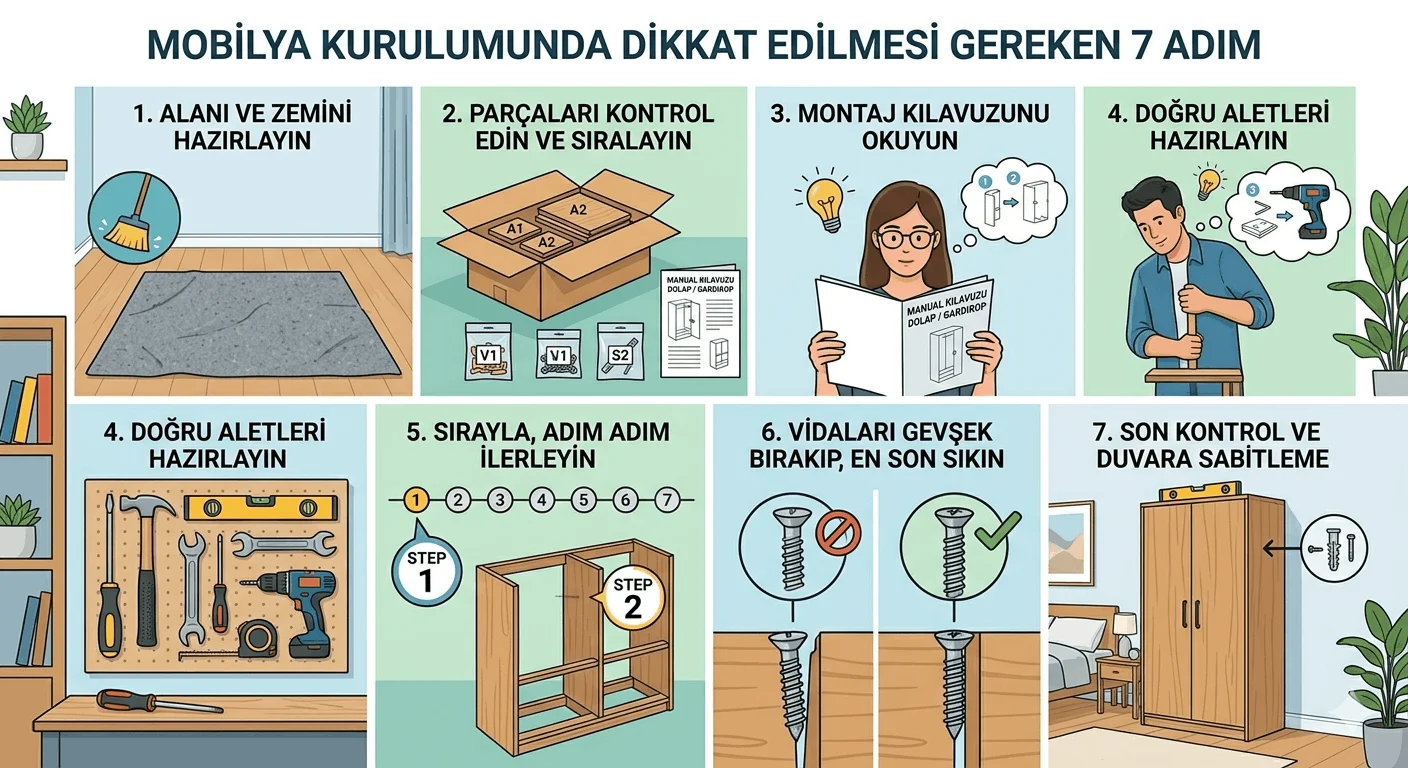 Mobilyalarınızı güvenli ve doğru şekilde kurmak için adım adım rehber. Montaj hatalarından kaçının ve uzun ömürlü kullanım sağlayın.